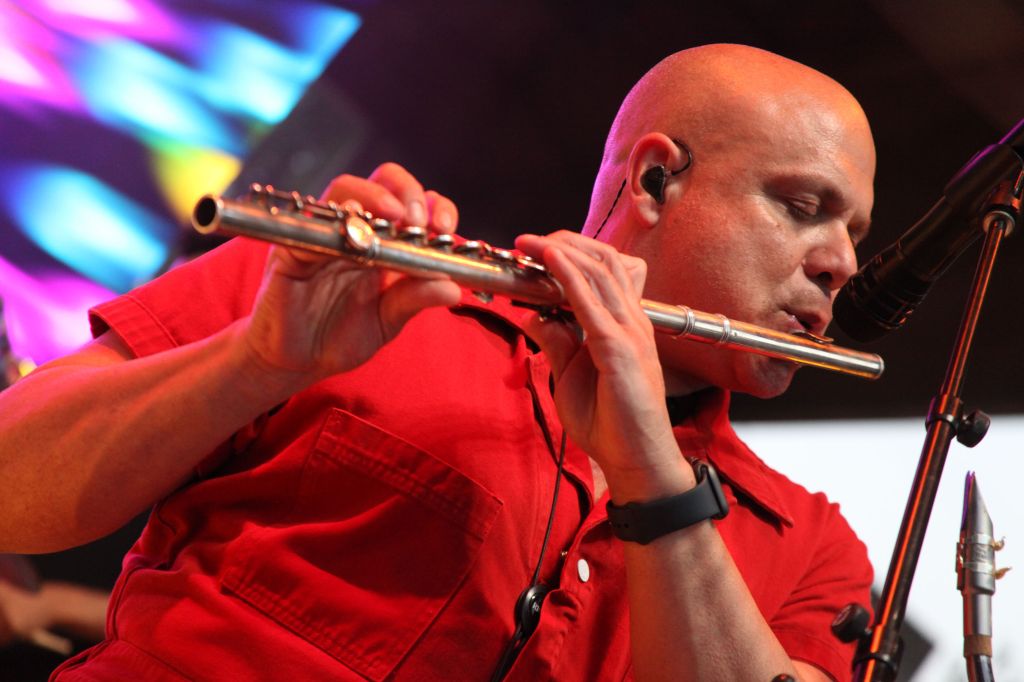When Jason Mraz took the stage, the energy shifted to a higher gear. Backed by an incredible ensemble featuring a wide array of instruments—saxophone, trombone, trumpet, flute, drums, guitar, bass, various percussion, keytar, and even a sitar—Mraz showcased his ability to effortlessly traverse musical genres. The band’s synergy was palpable, each instrument contributing to the rich tapestry of sound that filled the theater.